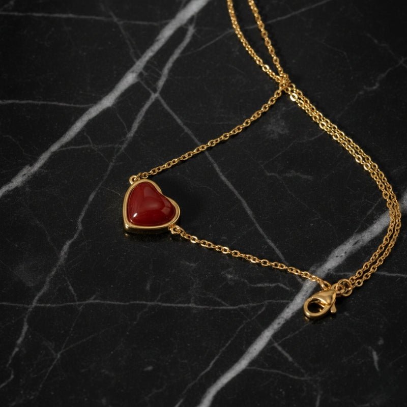 Bracelet Cœur Rouge – Acier Inoxydable Plaqué Or 18 Carats