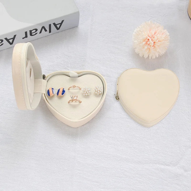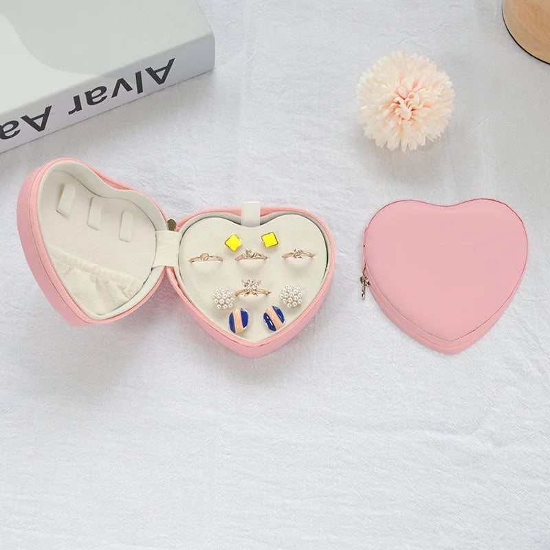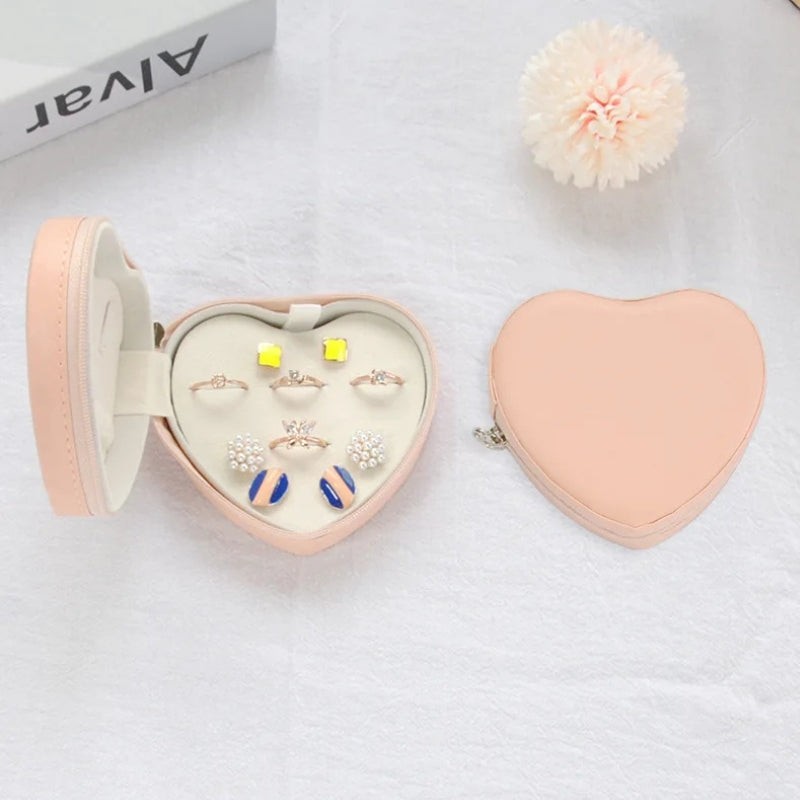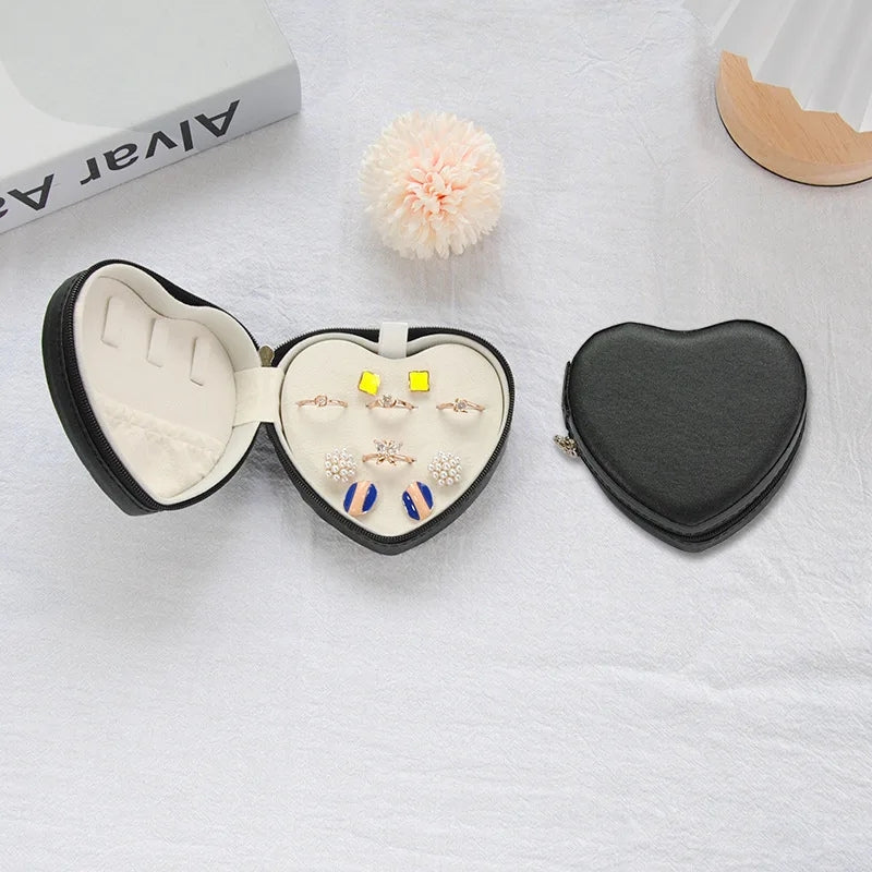 Boîte à bijou mini format – Coffret cœur zippé portable 10 × 9 × 4,5 cm