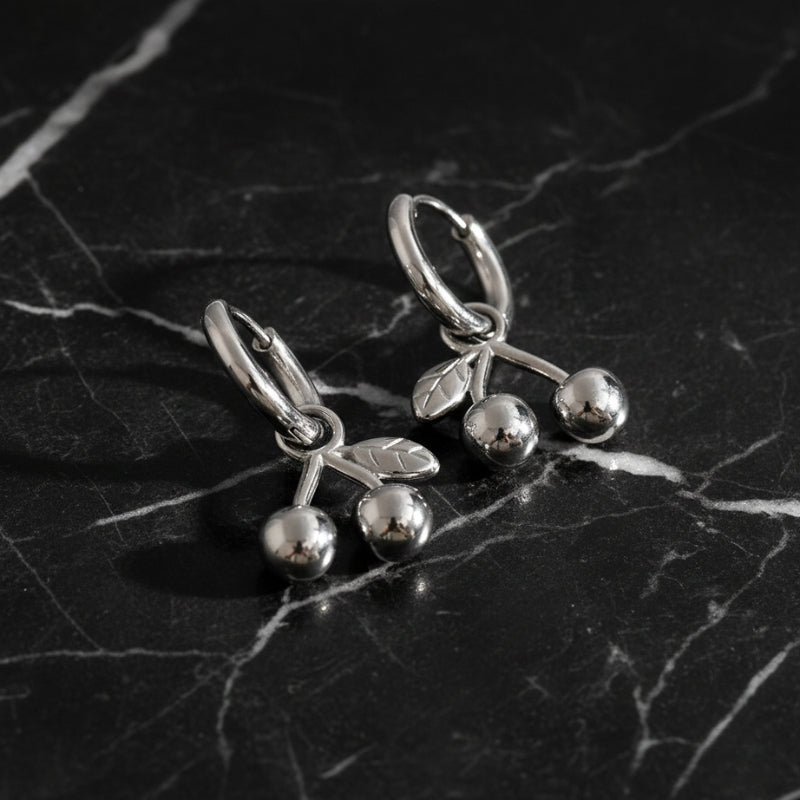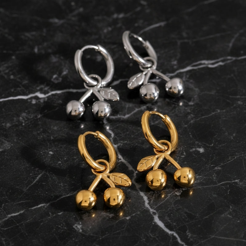 Boucles d’oreilles cerise – Design original en acier inoxydable doré ou argenté