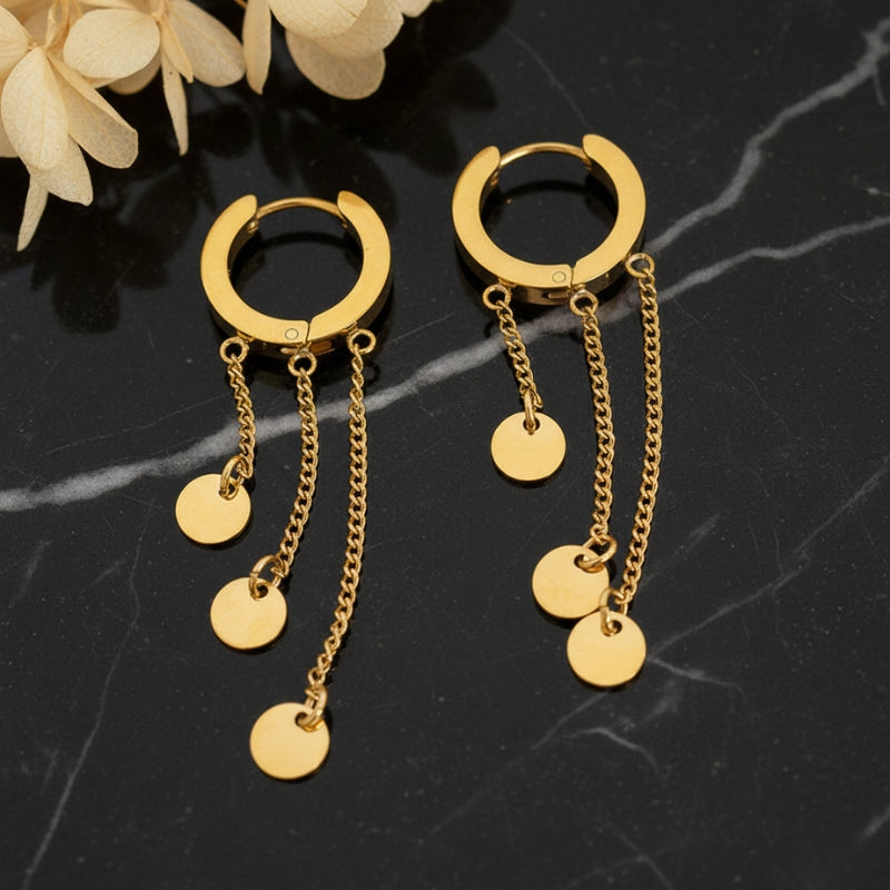Boucles d’oreilles créoles chaîne – Acier inoxydable doré 18K