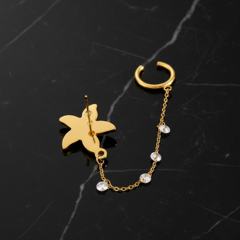 Mono boucle d’oreille étoile dorée avec strass en acier inoxydable