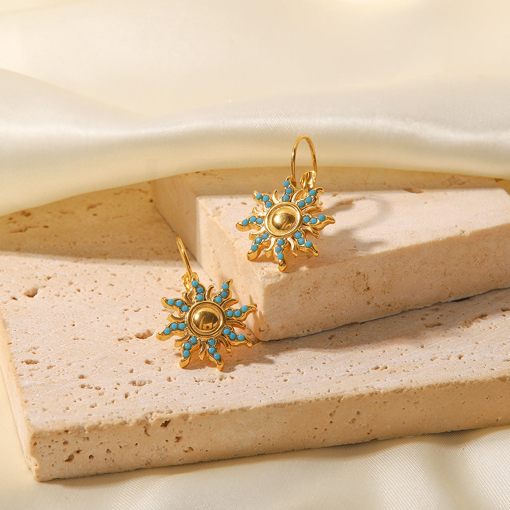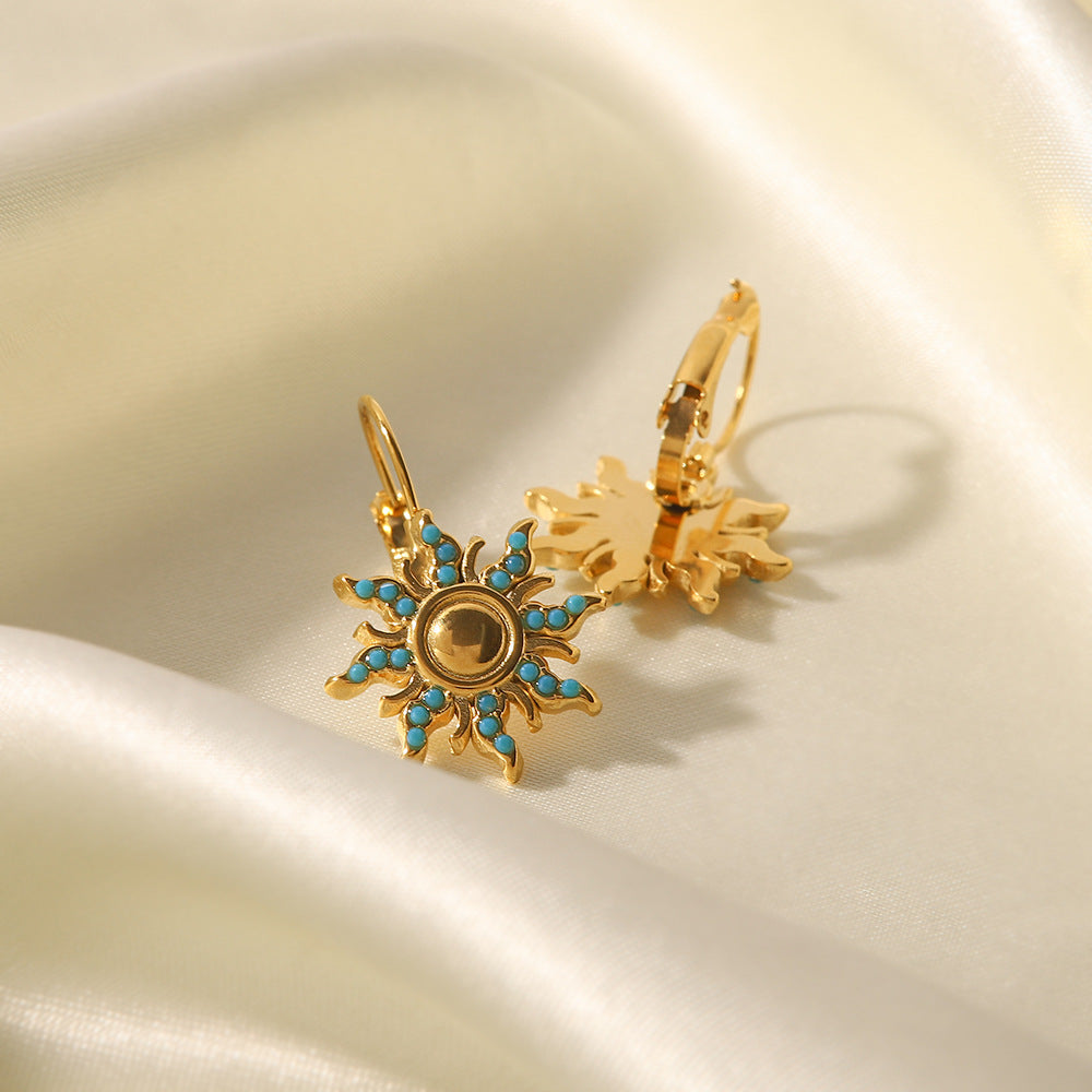 Boucles d’oreilles dormeuses 18K motif soleil – Acier inoxydable doré