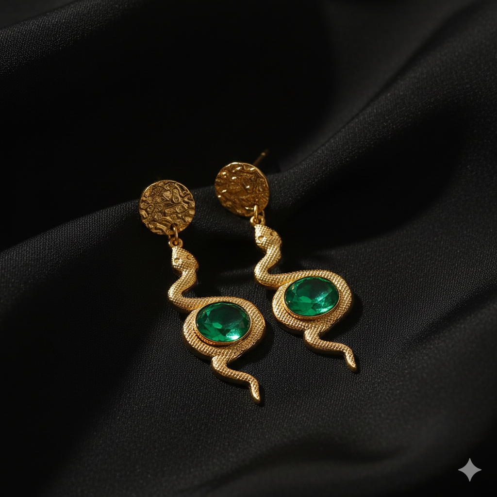 Boucles d’oreilles serpent vert émeraude en acier inoxydable PVD 18K