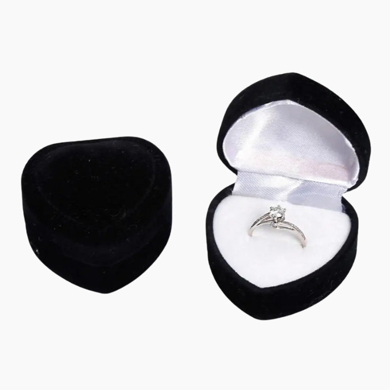 Écrin bague cœur noir – Boîte à bijoux en velours forme cœur