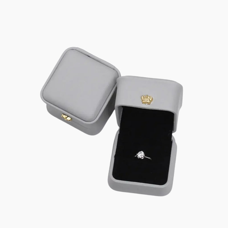 Écrin bague similicuir gris – Boîte carrée élégante pour bague