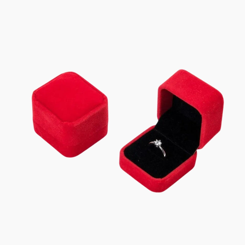 Écrin bague velours rouge – Boîte à bijoux carrée 7 × 7 × 4,5 cm