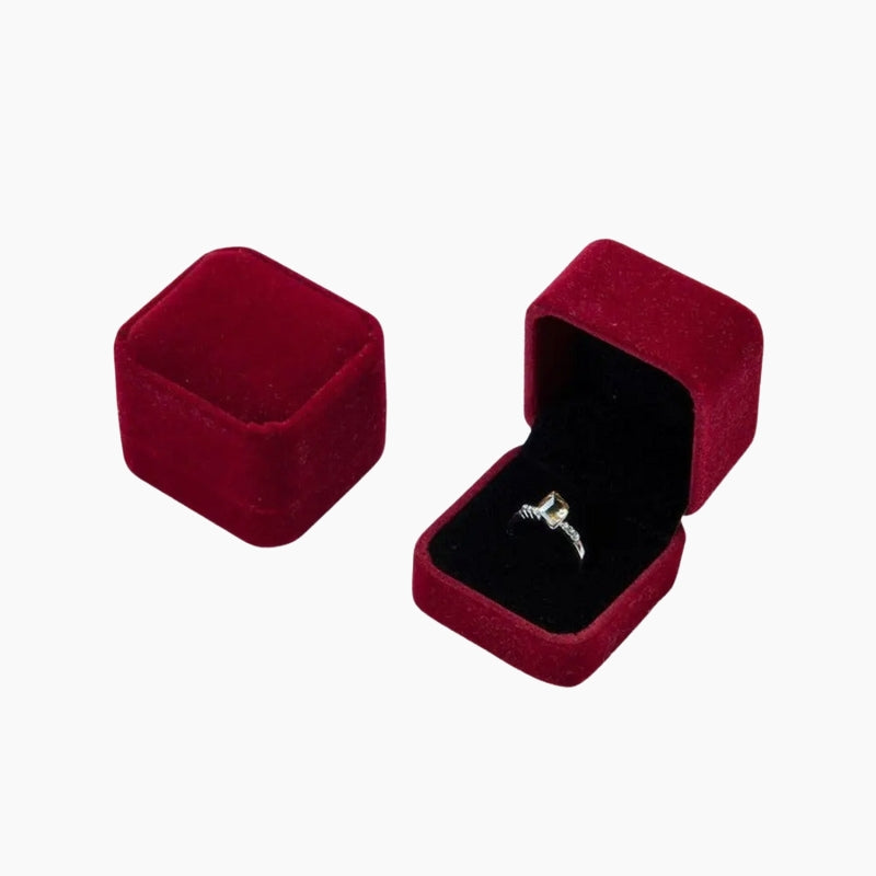Écrin bague velours rouge bordeaux – Boîte à bijoux carrée 7 × 7 × 4,5 cm