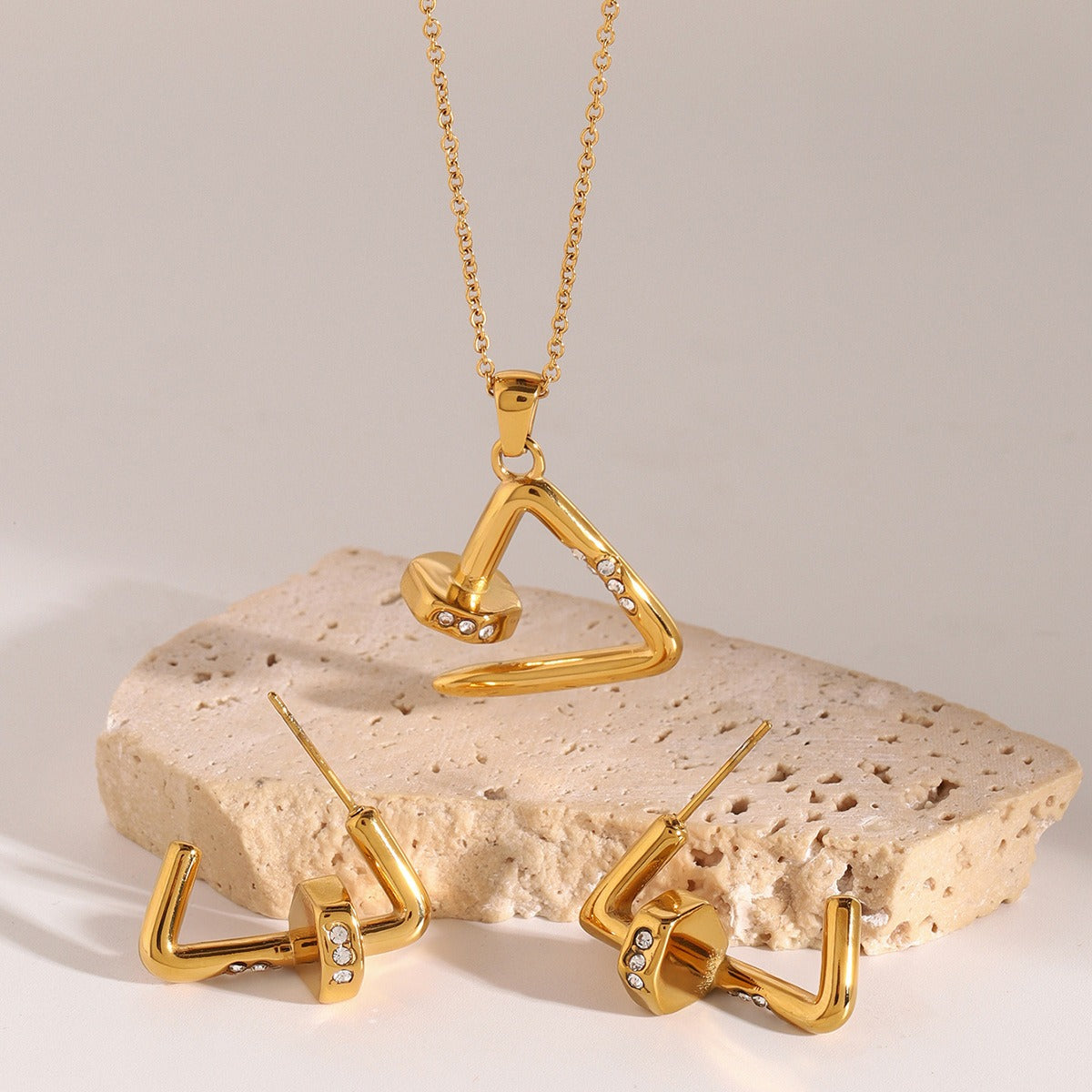 La parure clou doré est composée d’un collier et de boucles d’oreilles au design moderne, pensée pour s’adapter à toutes les occasions. Le collier se distingue par un pendentif géométrique plaqué or 18 carats qui met en valeur la simplicité et la qualité de la pièce. Les boucles d’oreilles reprennent le même motif afin de former un duo assorti. Chaque élément est fabriqué en acier inoxydable 316L, un matériau reconnu pour sa durabilité, sa résistance à l’eau et son confort au quotidien. Ces bijoux sont conçus pour résister à l’usure du temps tout en restant agréables à porter, même pour les peaux sensibles. Grâce à leur style sobre et polyvalent, ils peuvent être portés aussi bien seuls qu’associés pour un rendu plus complet.
