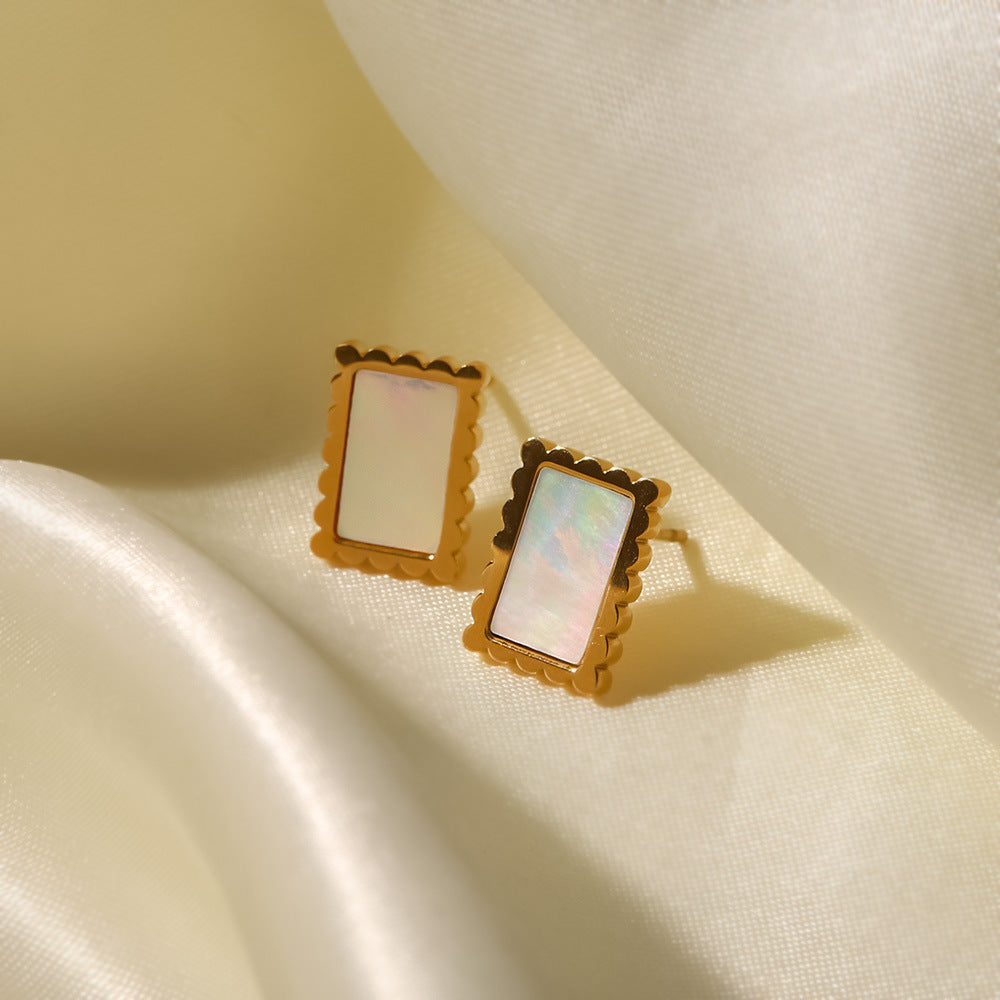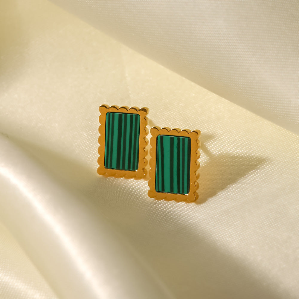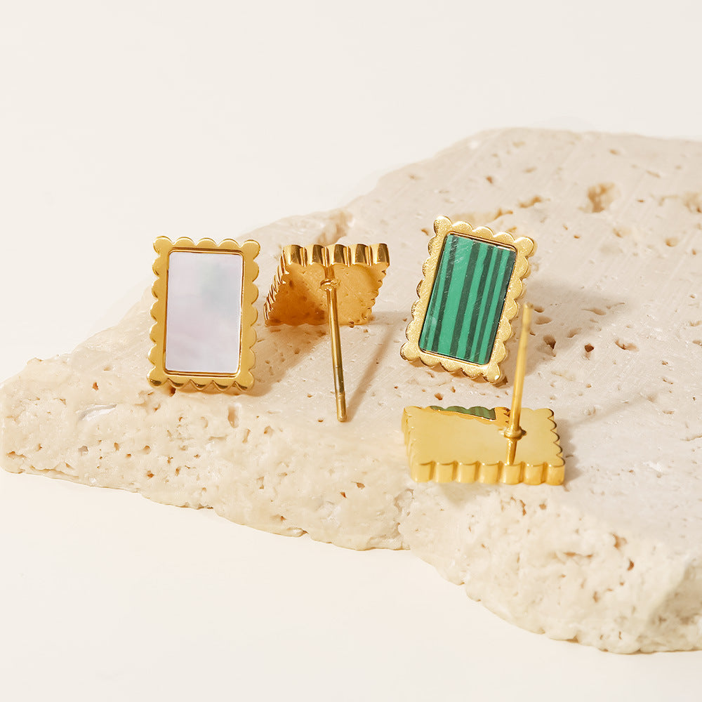 Boucles d’oreilles rectangulaires plaquées or 18k et acier inoxydable en malachite ou nacre