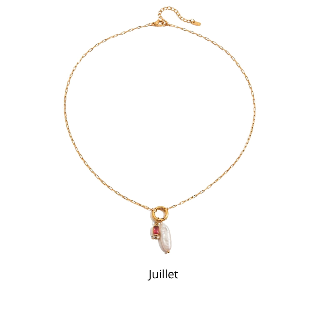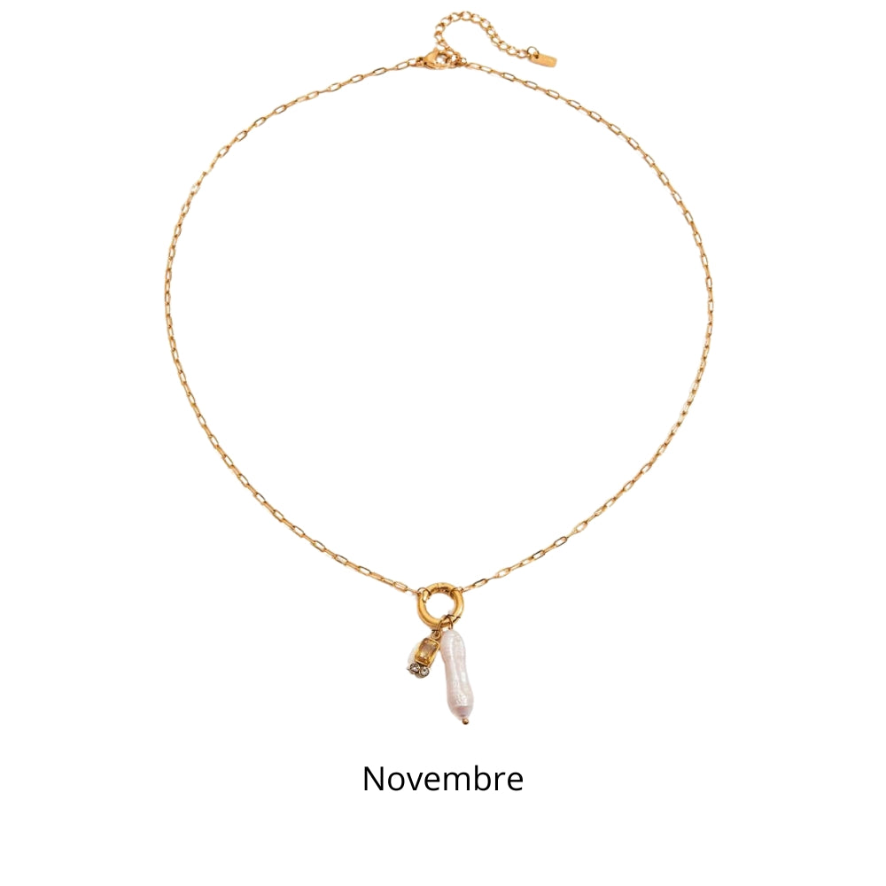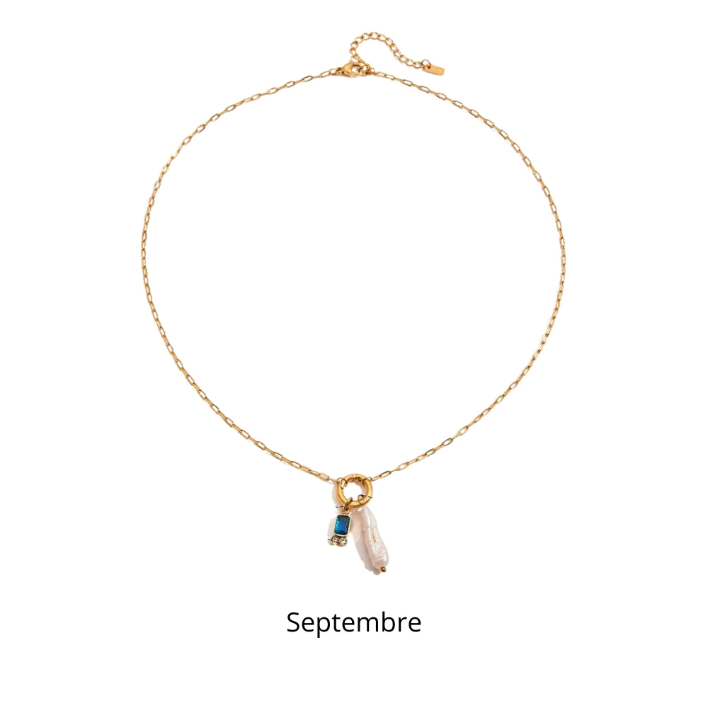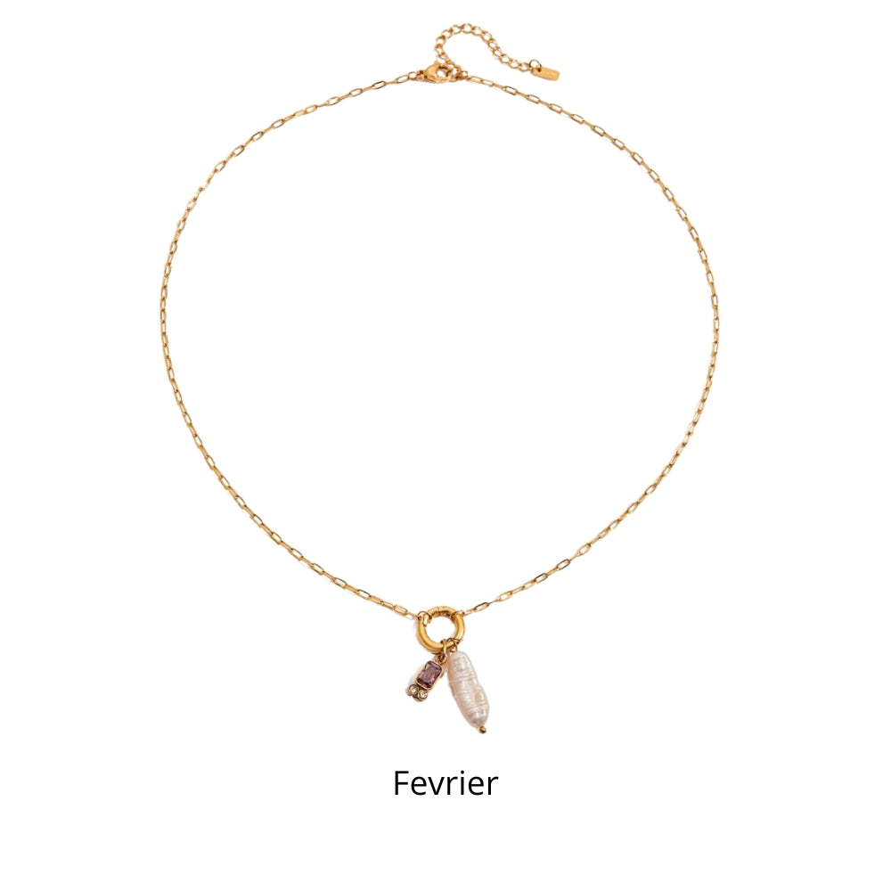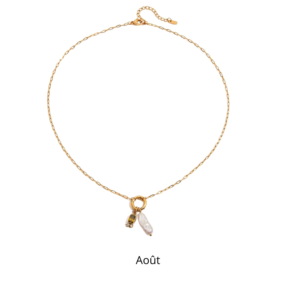 Disponible avec plusieurs variations, ce collier permet de créer un bijou sur mesure et chargé de sens. Par exemple, la pierre en janvier symbolise la force et la confiance, en février elle représente la sérénité, tandis que en mai la pierre incarne l’espoir et la vitalité. Associé à la perle blanche, chaque pendentif devient un talisman à la fois esthétique et personnel, que vous porterez facilement au quotidien. Ce bijou est également une excellente idée cadeau, que ce soit pour un anniversaire, une fête ou pour marquer un moment important de la vie. Son style minimaliste mais significatif lui permet de s’adapter à toutes les tenues, qu’elles soient décontractées ou habillées, tout en gardant une valeur sentimentale forte.